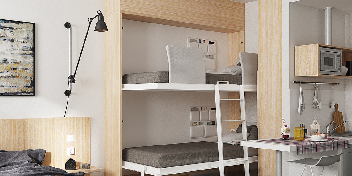 En Contract Systems fabricamos mobiliario técnico. Somos especialistas en camas abatibles y family rooms: hoteles, albergues, apartamentos turísticos, oficinas, apartahoteles y hostels. Nos adaptamos a sus necesidades, sacándole el máximo partido a su espacio, creamos el mueble AD-HOC para crear ambientes únicos.