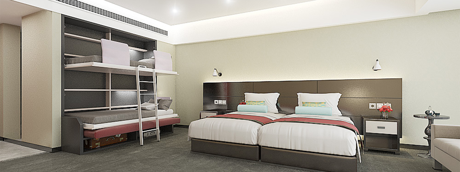 En Contract Systems fabricamos mobiliario técnico. Somos especialistas en camas abatibles y family rooms: hoteles, albergues, apartamentos turísticos, oficinas, apartahoteles y hostels. Nos adaptamos a sus necesidades, sacándole el máximo partido a su espacio, creamos el mueble AD-HOC para crear ambientes únicos.